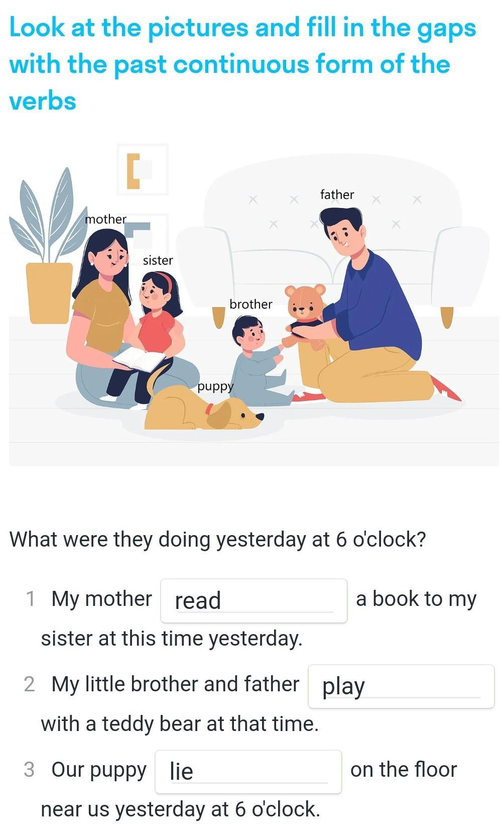 Lookat the pictures and fill in the gaps with the past continuons form of the verbs(инторактивная тетрадь)(тема-паст континиус)