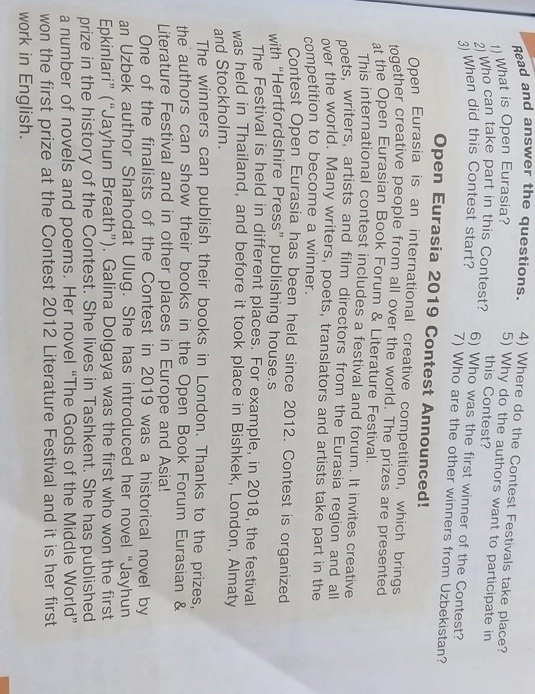 5) Authors want to practicipate in this Contest because the winners can publish their book in London , they can show their book in the Open Book Forum Eurasian& Literature Festival and in other places in Europe and Asia