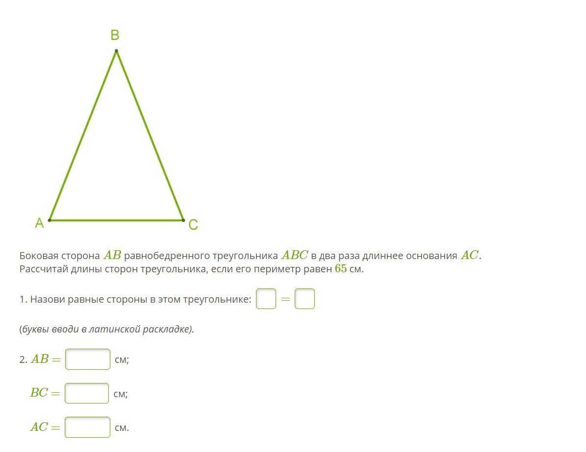 Рассчитай длины сторон треугольника, если его периметр равен 65 см.