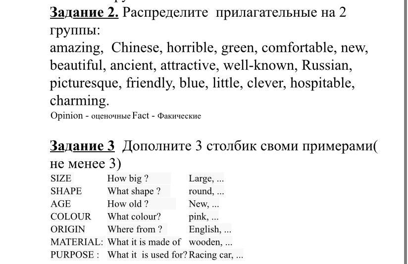 1. Amazing, horrible, comfortable, new, beautiful, ancient, attractive, well-known, picturesque, friendly, little, clever, hospitable, charming