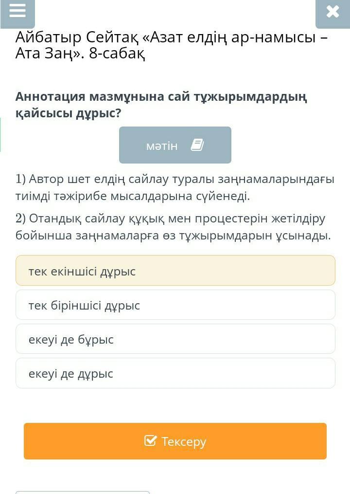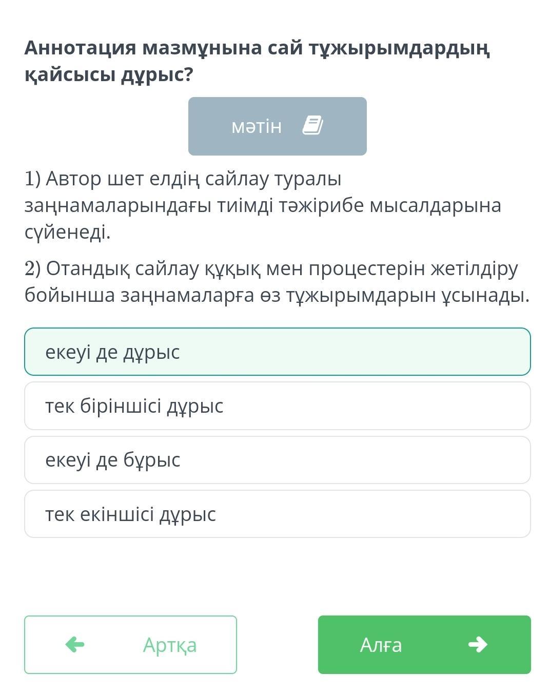 Аннотация мазмұнына сай тұжырымдардың қайсысы дұрыс?