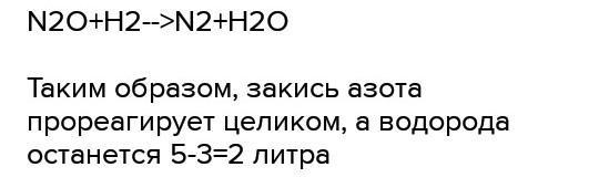 сколько литров водорода (н.у.) останется неизрасходованными в результате взаимодействия 5 л. водорода и 3 л. оксида азота (I)?