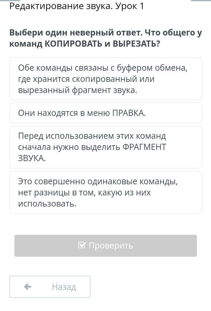 Выбери один неверный ответ. Что общего у команд КОПИРОВАТЬ и ВЫРЕЗАТЬ