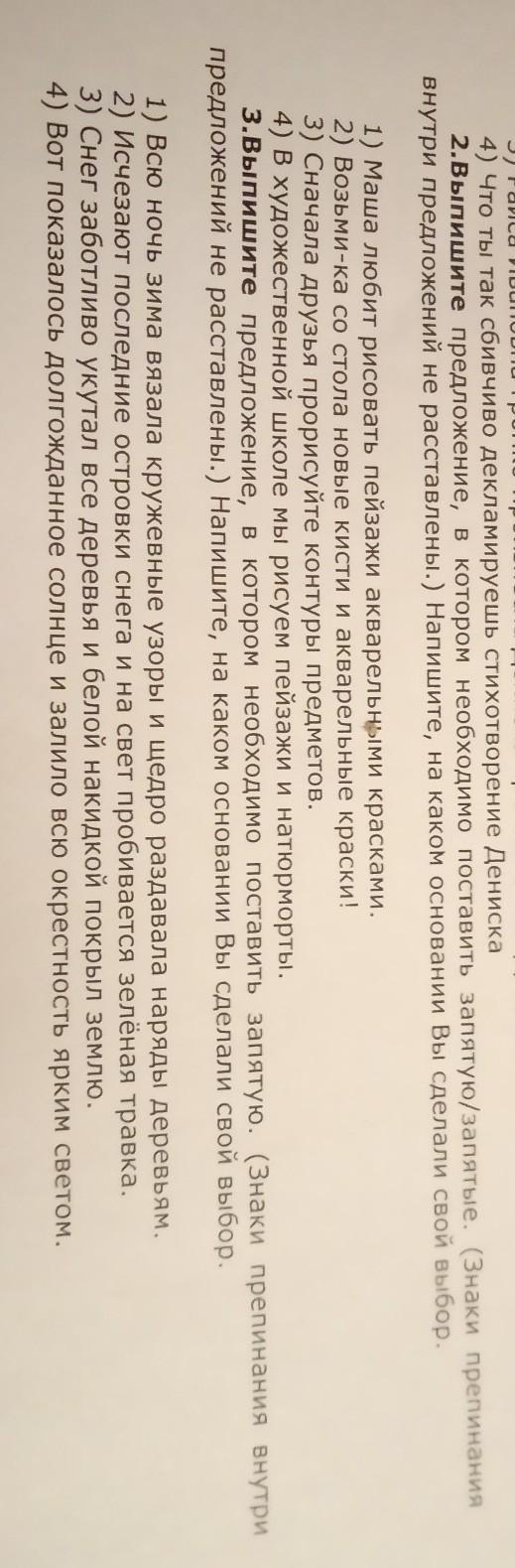 2 и 3.Выпишите предложение,в котором необходимо поставить запятую/запятые (Знаки препинания внутри предложений не расставленв.)Напишите, на каком основании вы сделали свой выбор.Помогите пожалуйста!Только 1 предложение!И пояснение!Однородные члены или если там 2 грамматической основы