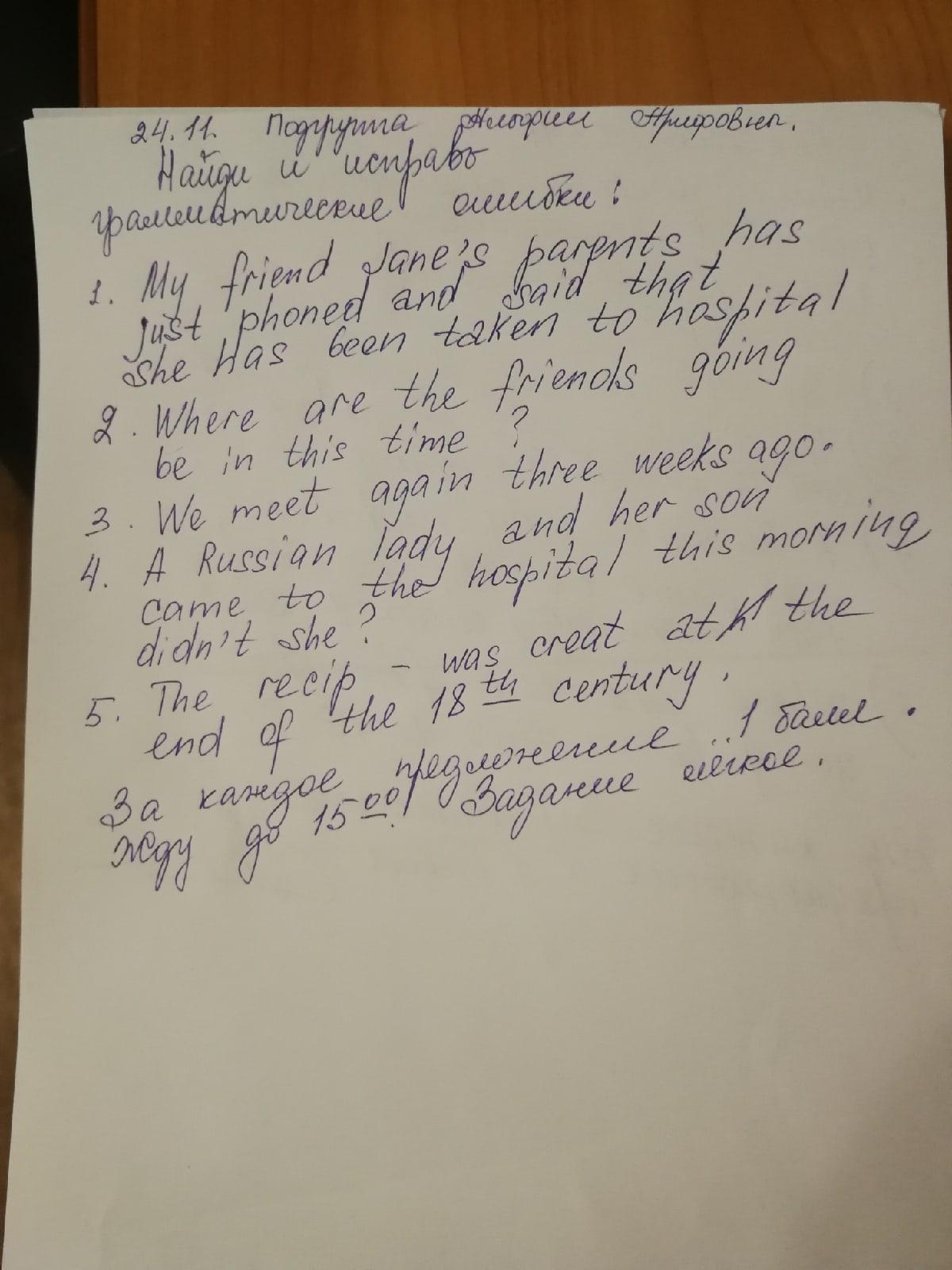 Ответ:1. Have just phoned, and say2. The не надо 3. We have met each other 4. после первого предложения точка и потом Didn't she?5. recipe, createОбъяснение:я исправил твои ошибкипж лайкни дружок ;)нажми