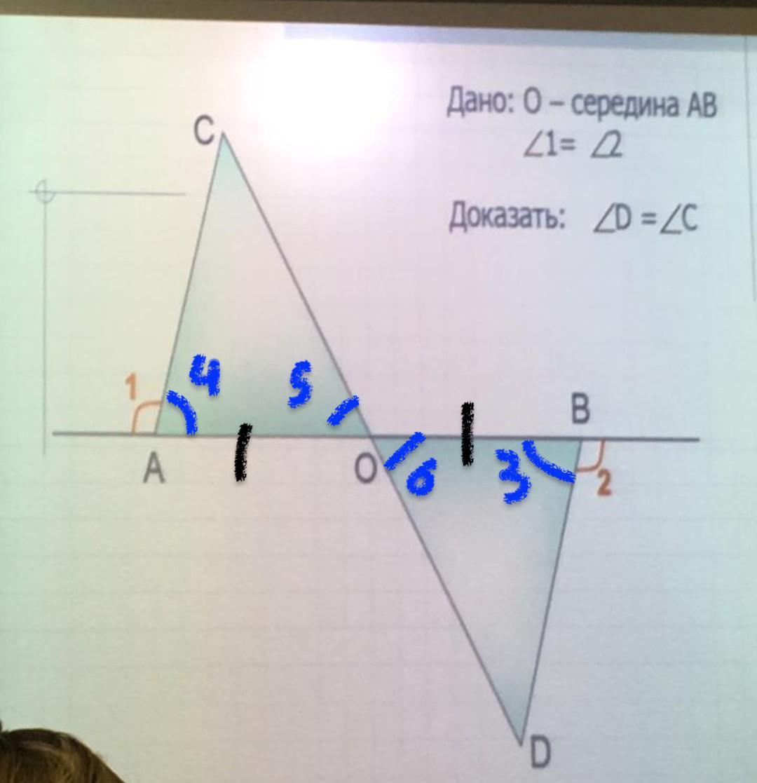 углы 3 и 4 равны т к угол 1 = угол 2