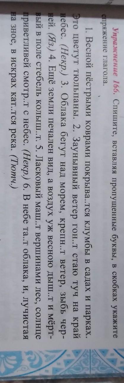 Спишите, вставляя пропушенные буквы, в скобках укажите спряжение глагола 1. Весной пёстрыми коврами покрвается