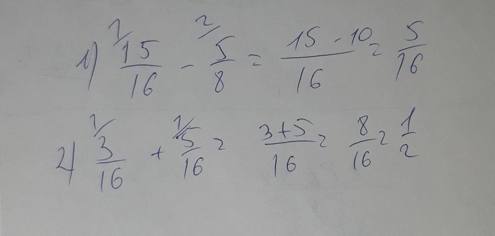2) 3/16+5/16=8/16=1/2