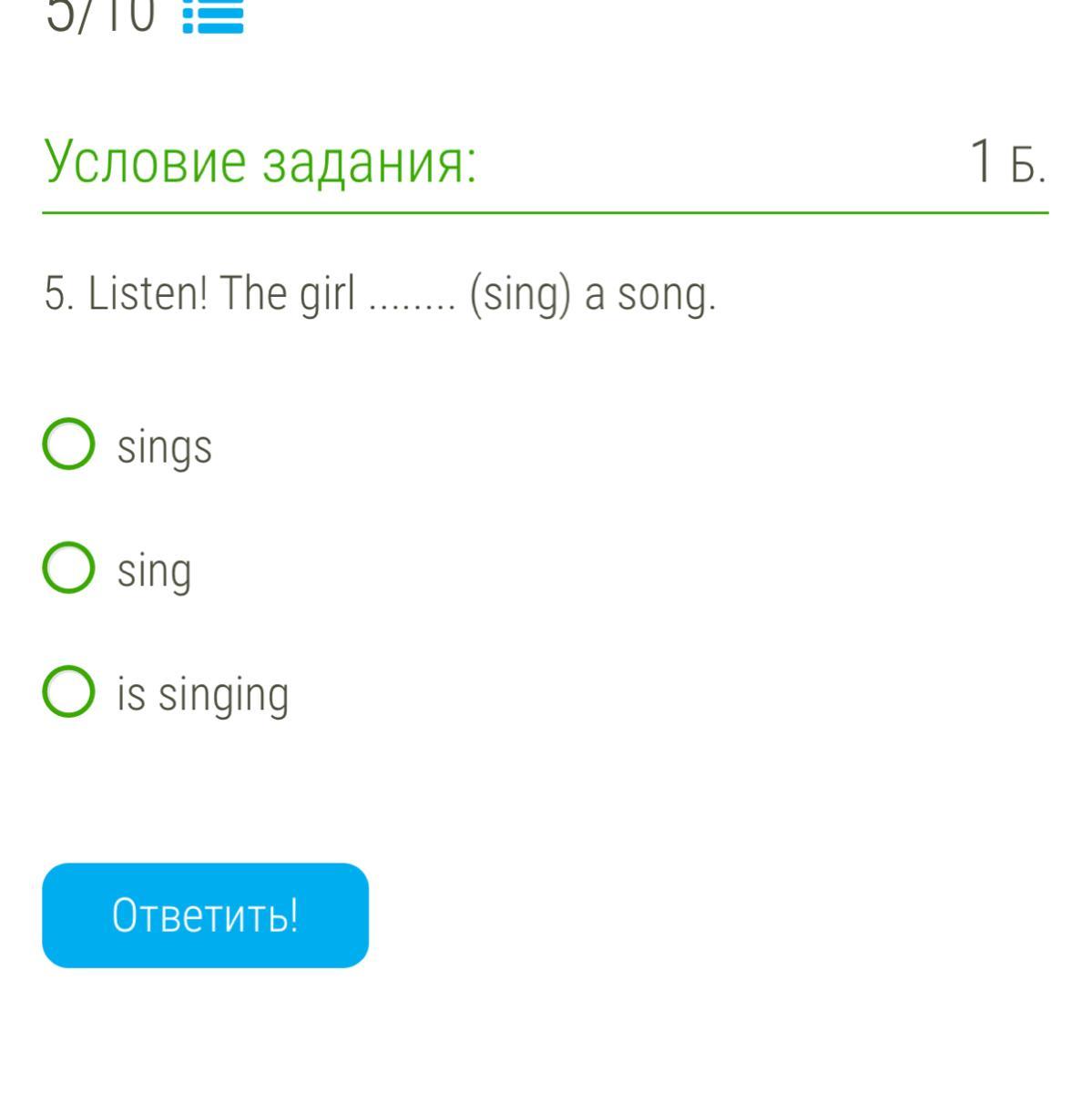 наверно is singing бо тут говориться про теперішій тривалий час Present Continues