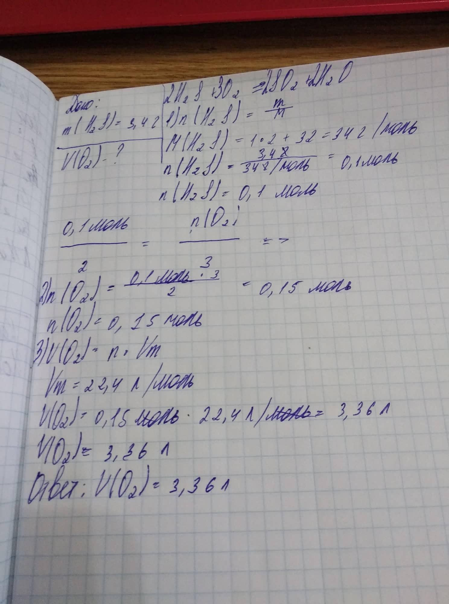 в каком объеме кислород потребуется для сжатия 3,4 грамма H2S сероводорода