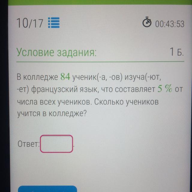 т.к эти 84 ученика составляют 5% всех учеников, то нужно 84*5, получается 420