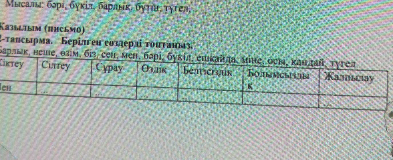 2-тапсырма. Берілген сөздерді топтаңыз.