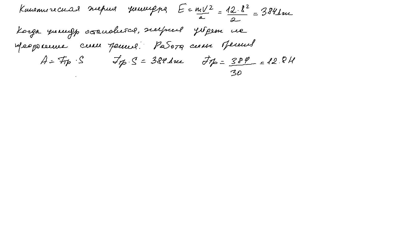 Однородному цилиндру массой 12 кг предоставили скорость поступательного движения 8 м / с. Катясь горизонтально без скольжения, цилиндр проходит путь 30 м. Определить силу трения.