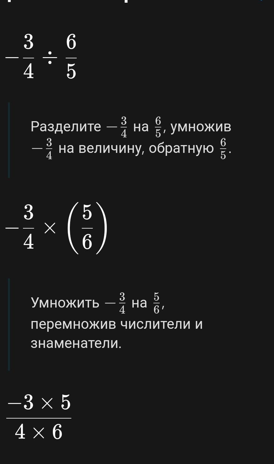 -( 3/4 × 5/6) = -( 1/4 × 5/2) = - 5/8