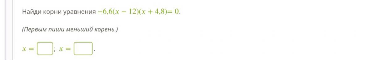 Найди корни уравнения −6,6(−12)(+4,8)=0.