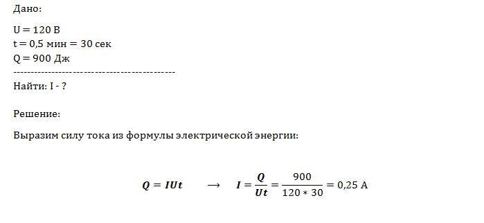 II при напряжении 120 В электрическая лампа в течение 0,5 мин потребила 900 Дж энергии. Сила тока в лампе равна