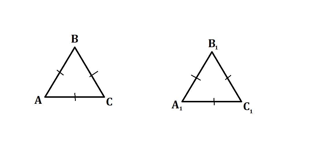 По свойству равностороннего треугольника AB = BC = AC и A₁B₁ = B₁C₁ = A₁C₁.