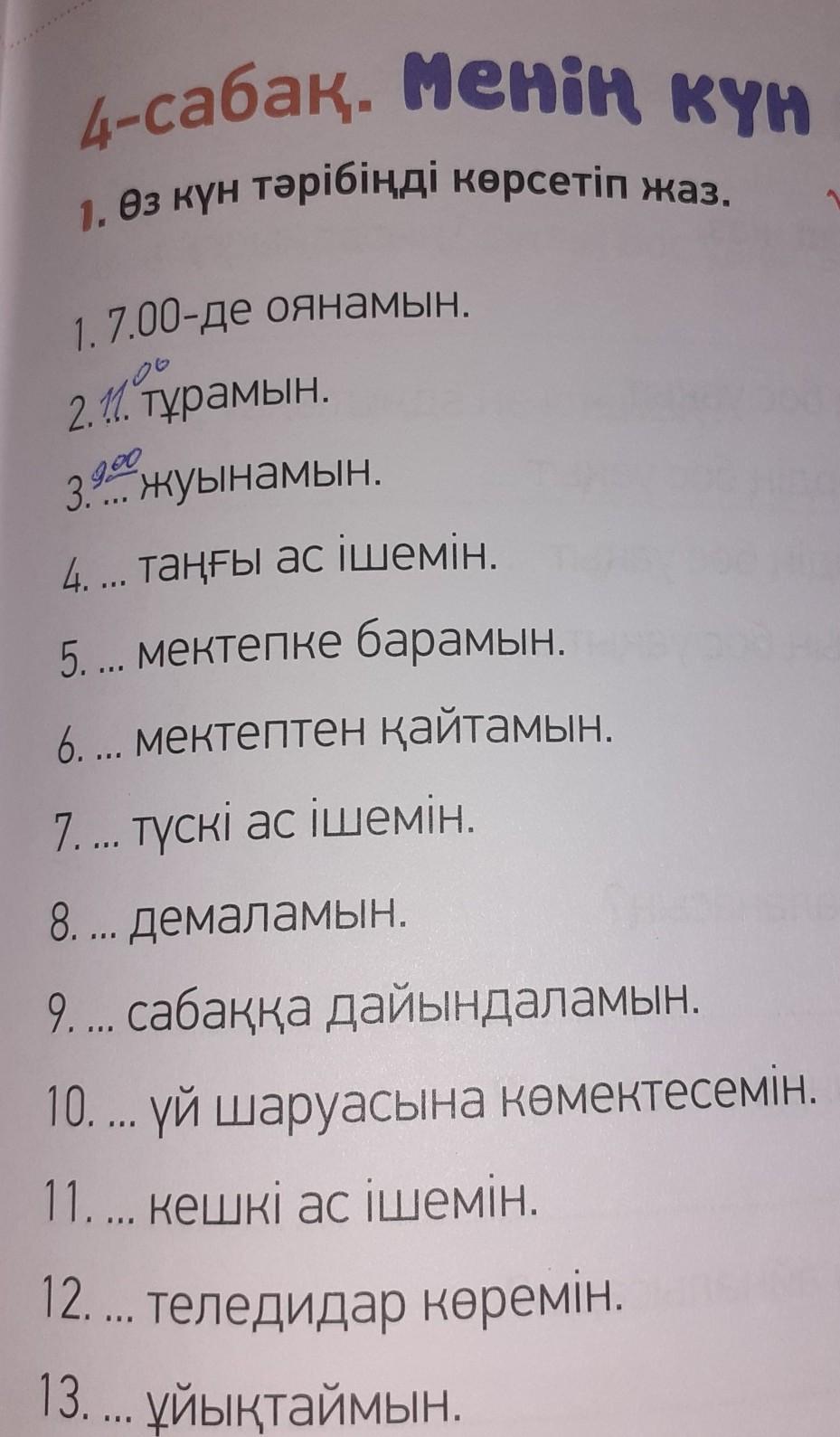 1. Өз күн тәрібіңді көрсетіп жаз.