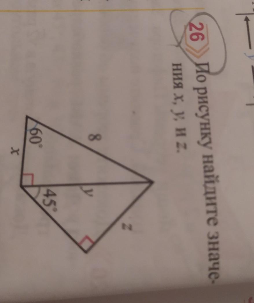 так же по т Пифагора найдем z.Данный треугольник равнобедренный,потому что третий угол равен 180°-90°-45°=45°.