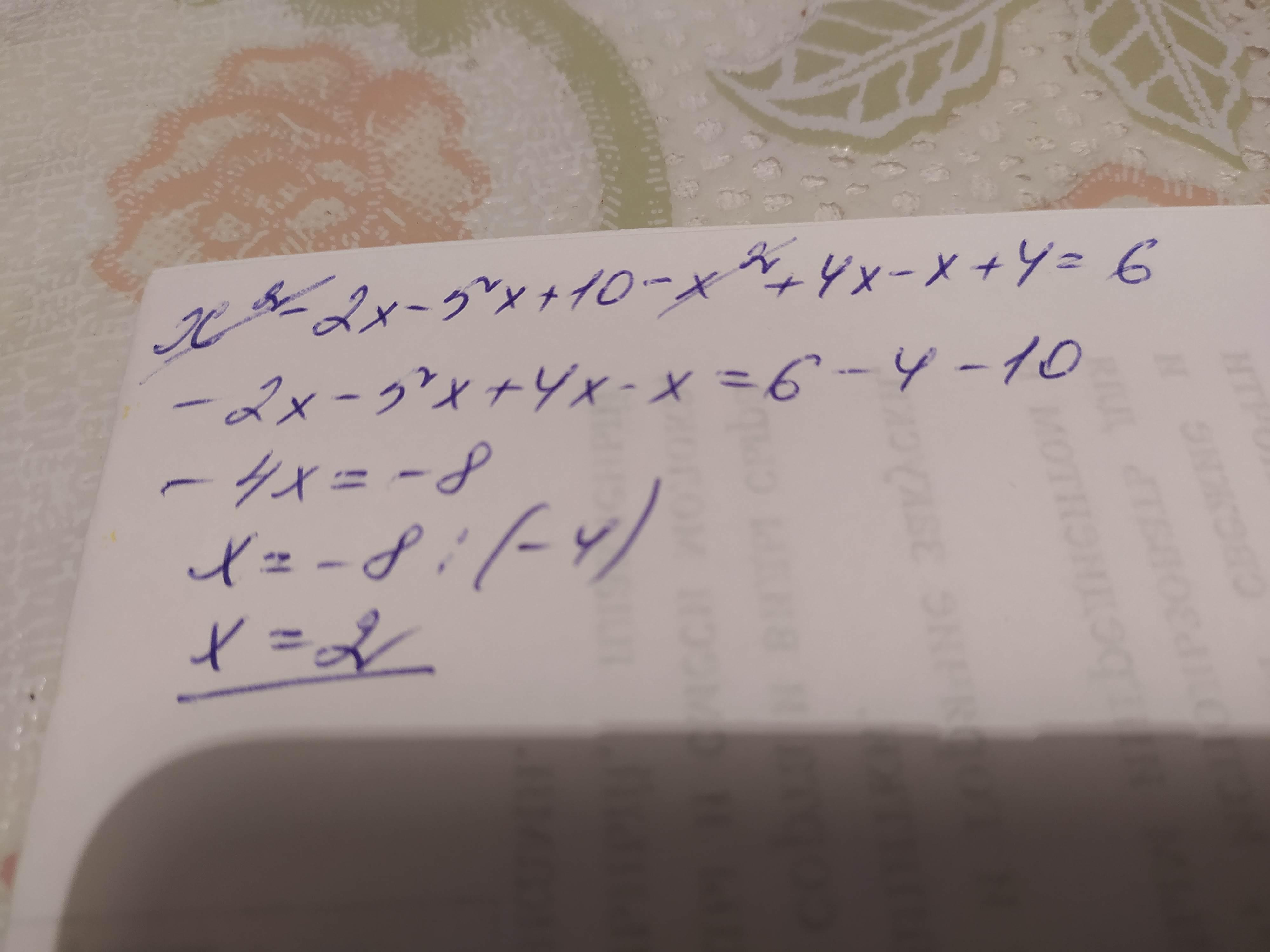 x2-2x-5x+10-(x2-4x+x-4)=6