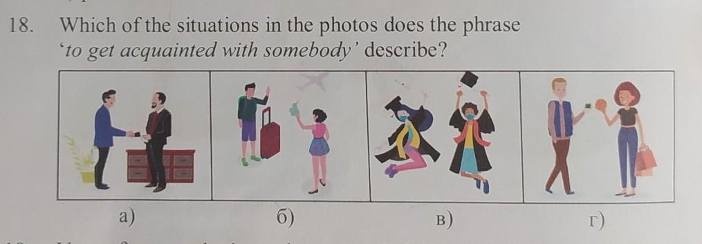 Ответ: a и г. Но если нужно выбрать 1 картинку, то a. Г больше показывает встречу, а не знакомство.