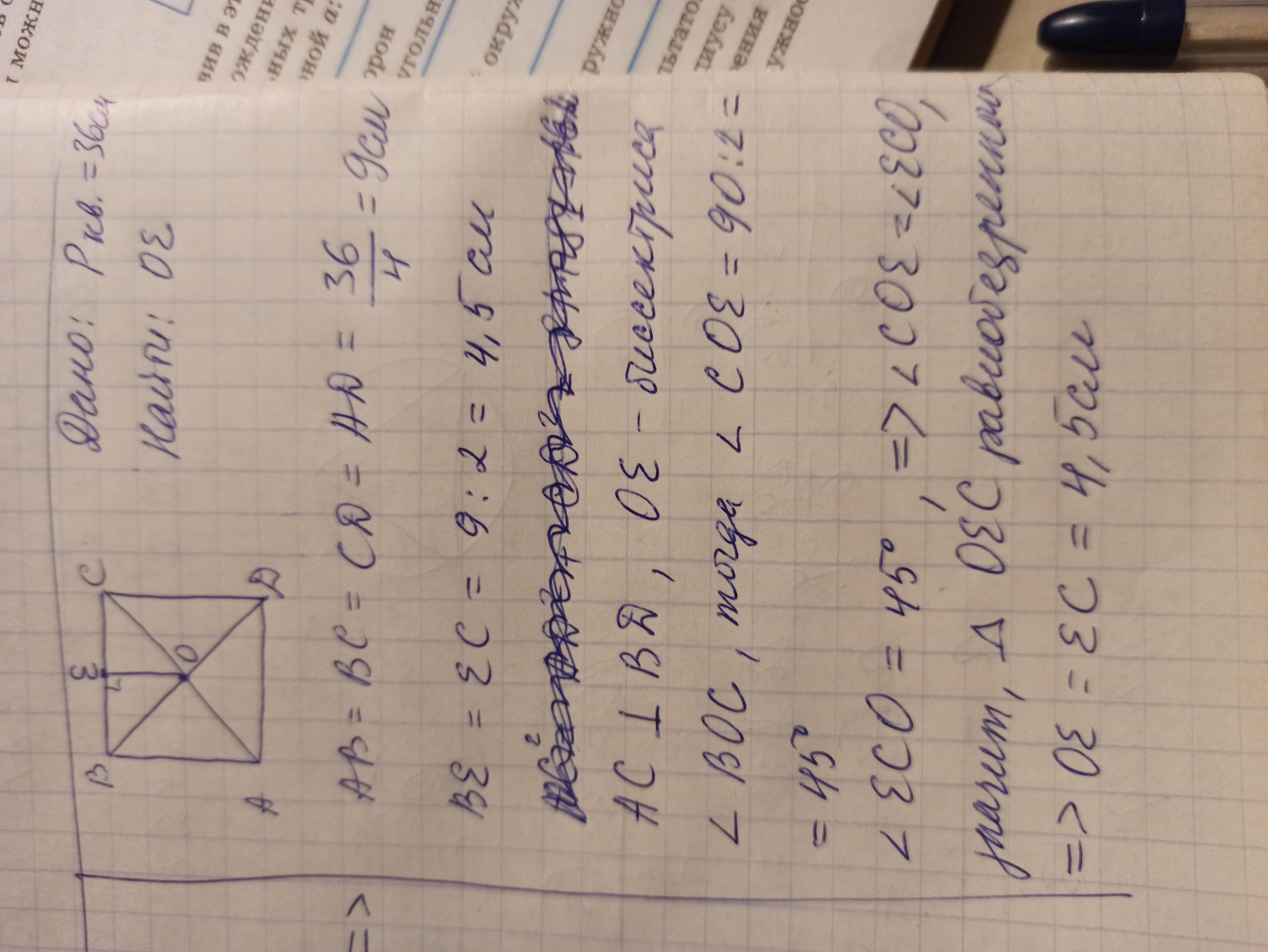 Задача:Периметр квадрата равен 36 см.Определите расстояние от точки пересечения диагоналей квадрата до его сторон.