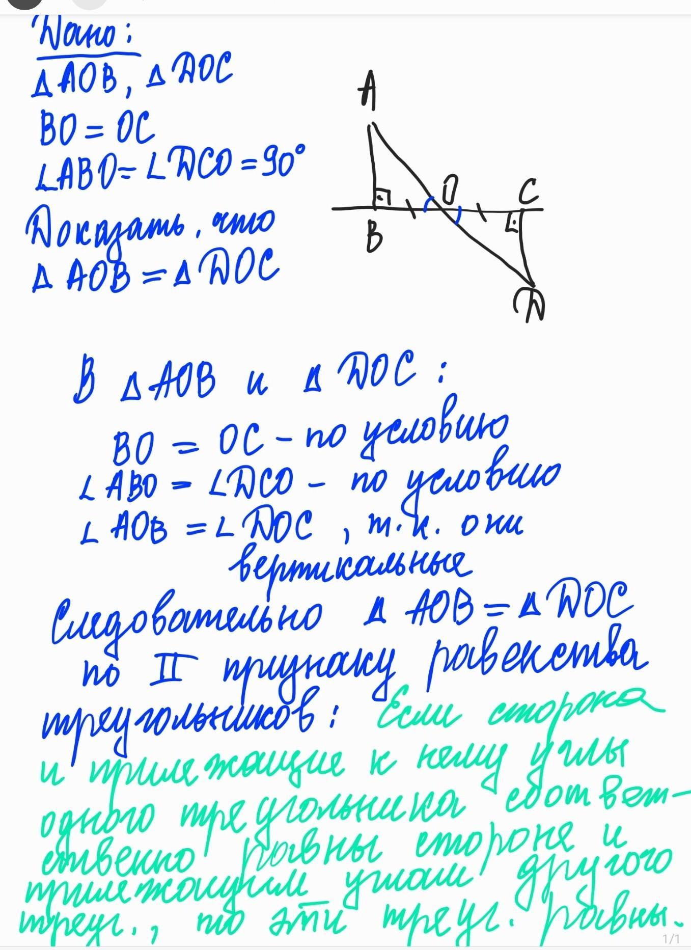 Помогите пожалуйста нужно доказать, что триугольник АОВ равен триугольнику ДОС срочно надо заранее спасибо
