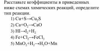 1) 2Cu+S = Cu2S. У купрума (меди) валентность 2 после реакции поэтому надо уровнять правую сторону с левой. Что бы были равно) Соединение