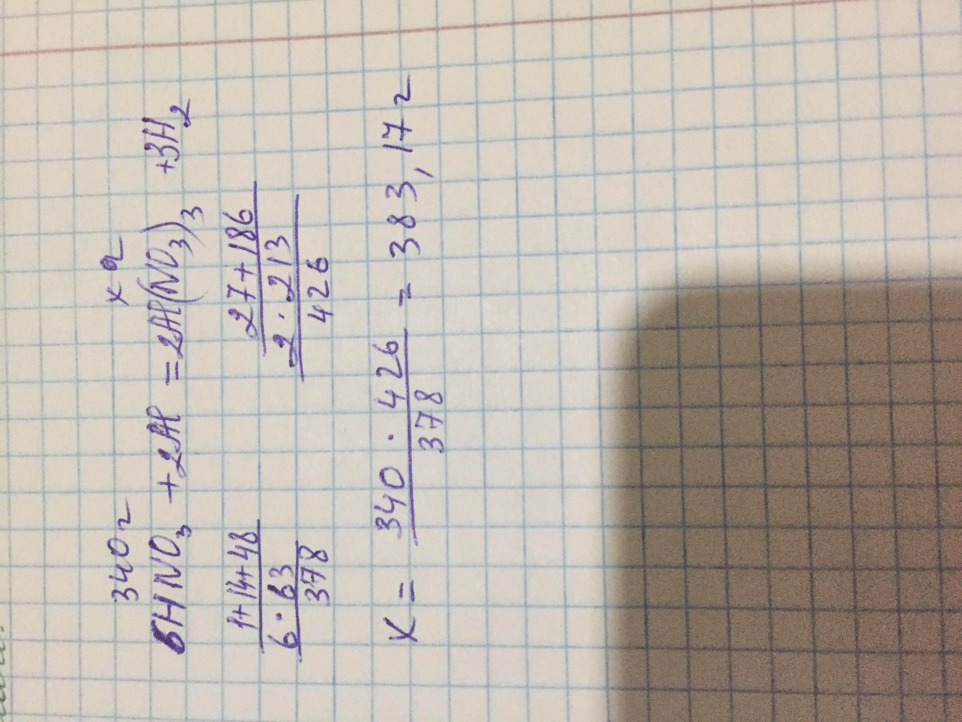 Раствор азотной кислоты с массовой долей 23% массой 340 Грам реагируют с алюминием. Найдите массу соли.