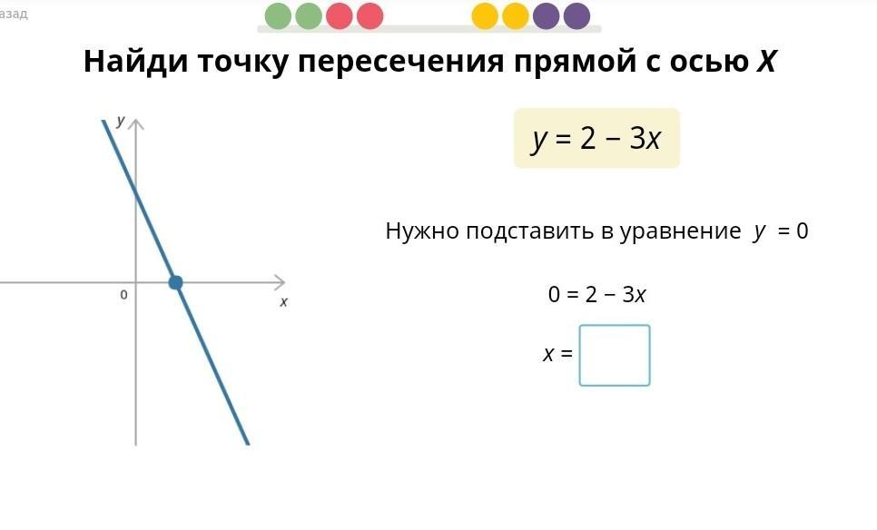 Действительно, нужно подставить в выражение y = 2 - 3x вместо y число 0 - буквально. Получаем