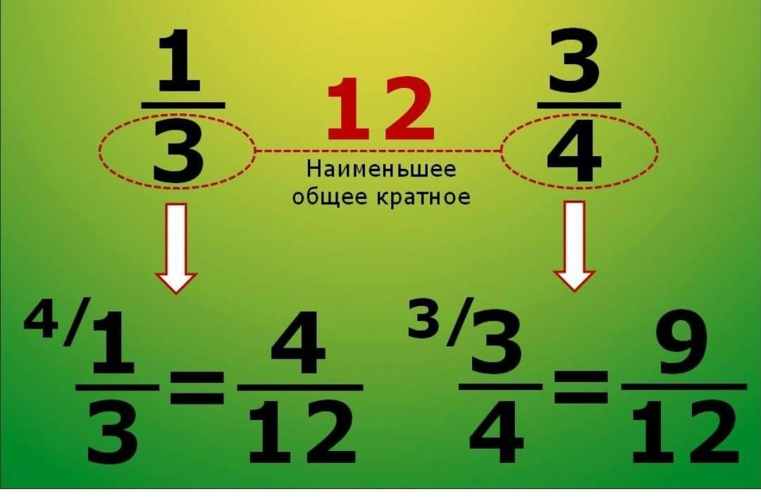тут нужно в первом случае общий знаменатель - 6,тк и в том и другом случае оно является минимальным. Когда мы приводим дроби к общему знаменателю, мы по сути пытаемся найти такое число, которое делится на каждый из знаменателей.