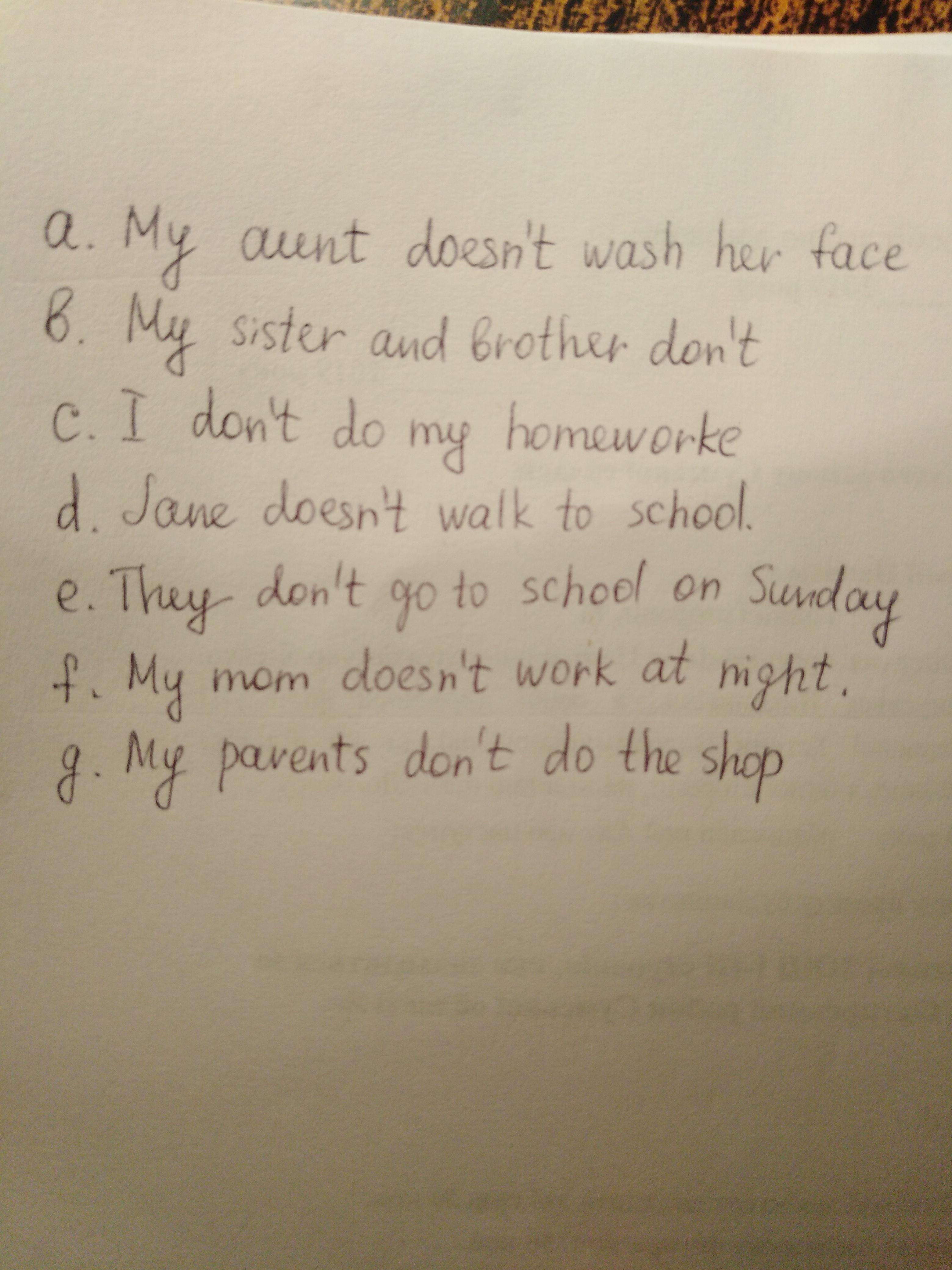 g. My parents don't I doesn't do the shop дайте пожалуйста праведный ответ