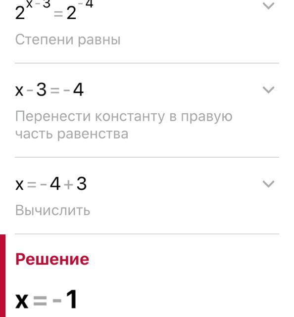 1/16 если перевести это 2^-4. Потом так как основания равны приравниваем и решаем
