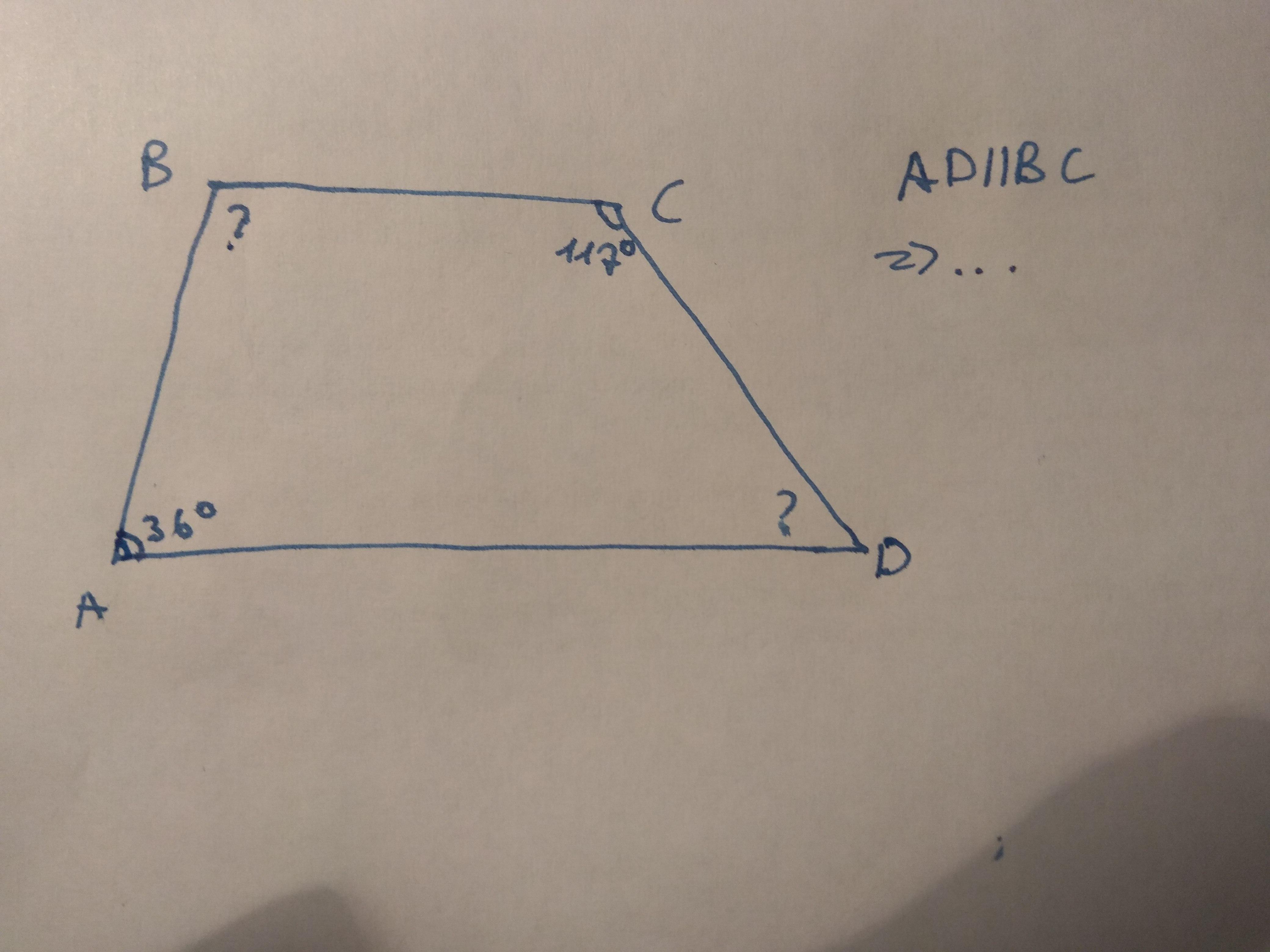 найдите углы трапеции , если один из её углов равен 36 градусов, а ему противолежащий 117 градусов.
