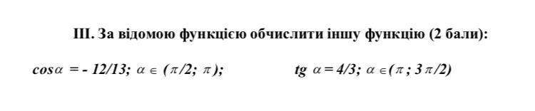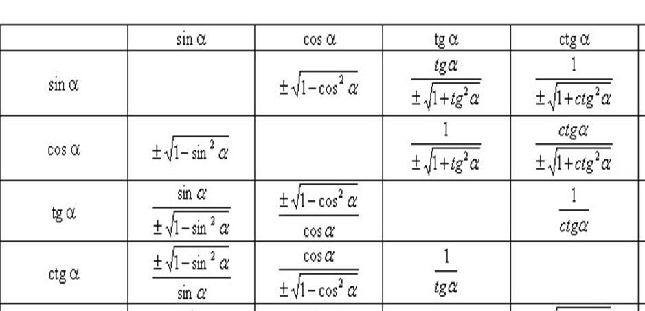 Если известно значение одной тригонометрической функции заданного угла, то по формулам можно определить другие функции.