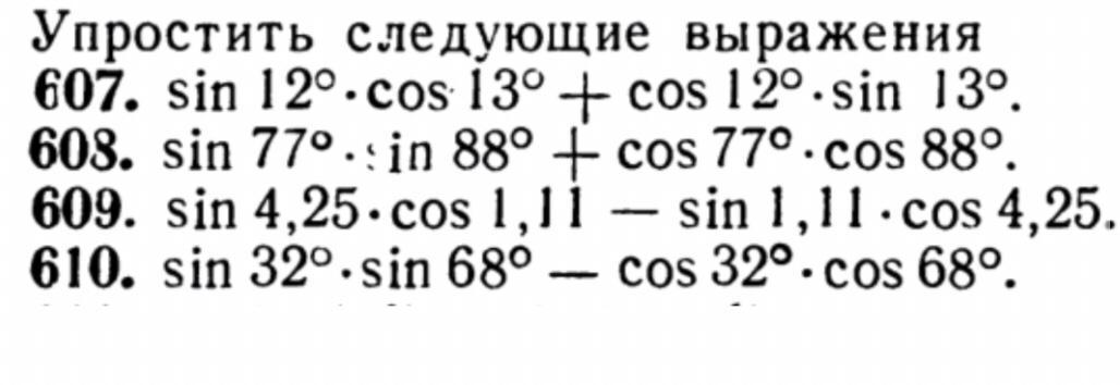 № 608 - Ответ: cos11°.