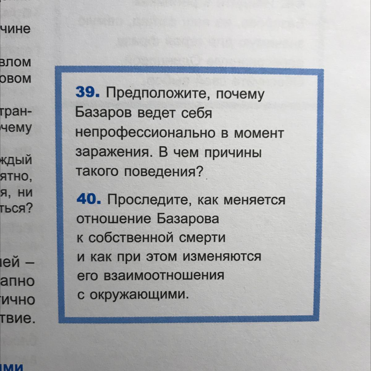 Базаров после заражения, будучи квалифицированным врачом, понимает, что его уже ничего не спасет, однако это уже спустя некоторые время после заражения. Поэтому, причиной также можно считать, что взгляд на мир у этого героя подразумевал то, что ему нужен такой человек как он, поэтому он просто отрицал то, что умрет бессмысленной смертью