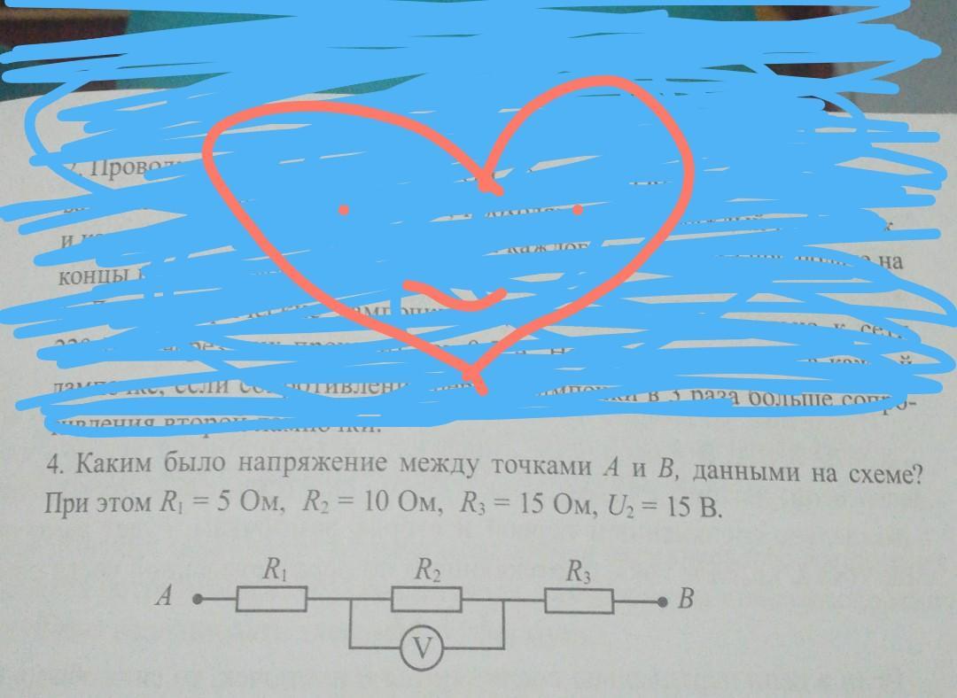 4. Каким было напряжение между точками А и В, данными на схеме?