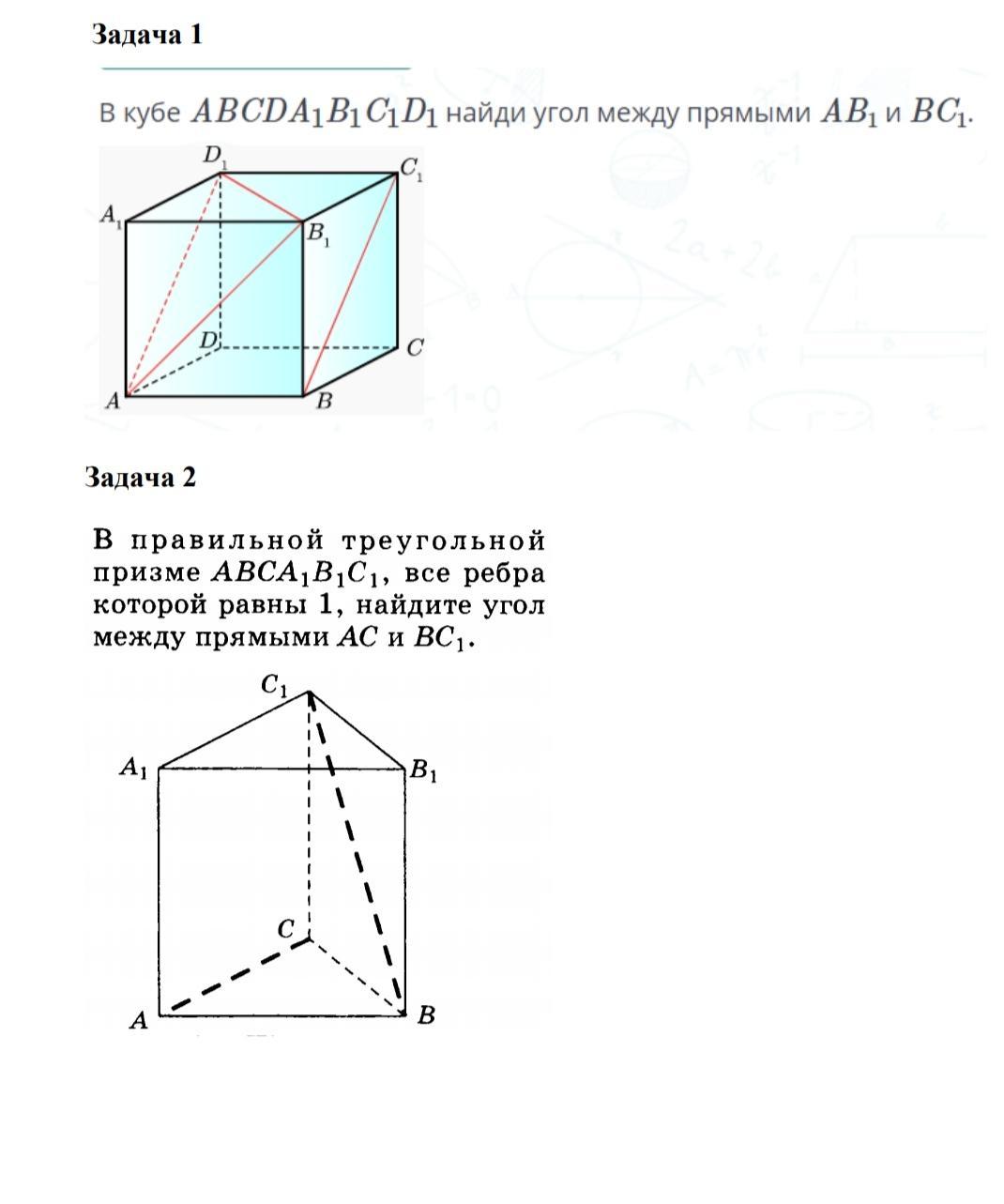 Решите пожалуйста! Даю 45 баллов!Задача 1. В кубе ADCDA1B1C1D1 найди угол между прямыми AB1 и BC1.