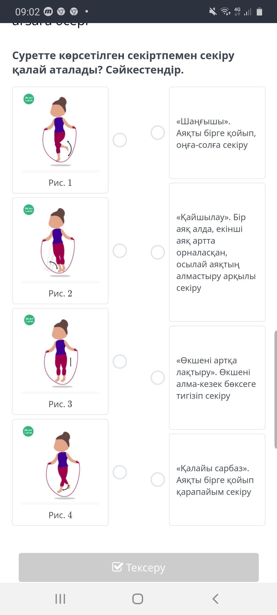 Суретте көрсетілген секіртпемен секіру қалай аталады? Сәйкестендір.