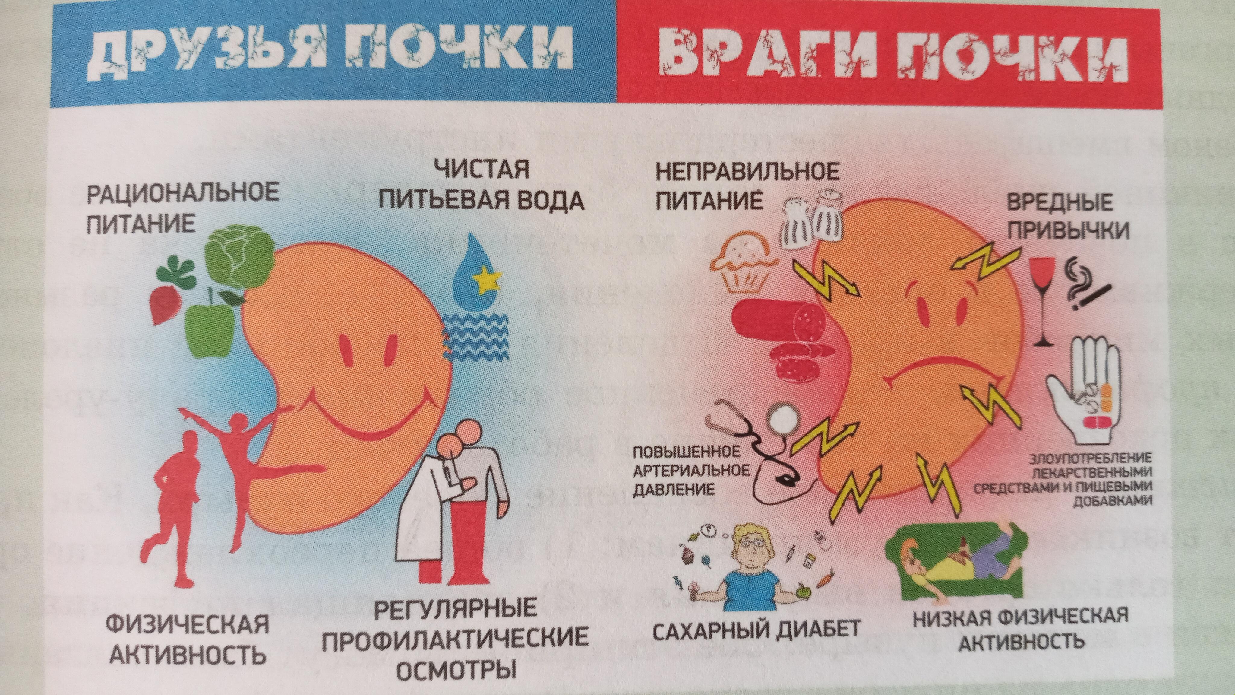 Изобразите в виде схемы воздействие положительных и отрицательных факторов, влияющих на работу почек