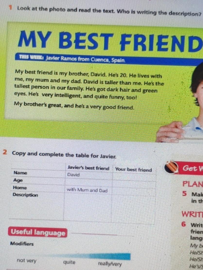 Для 2 задания я написала 1 столбик, а во втором нужно написать про ТВОЕГО друга. Его имя, возраст, где живёт, его описание
