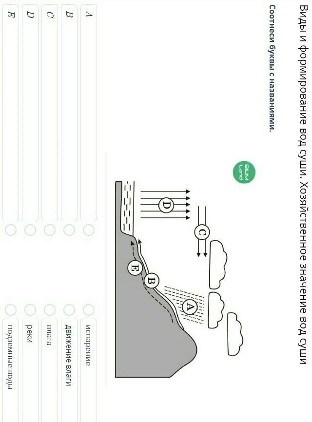 a-влага b-реки c-движение влаги d-испарение e-подземные воды