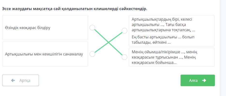 Эссе жазудағы мақсатқа сай қолданылатын клишелерді сәйкестендір.