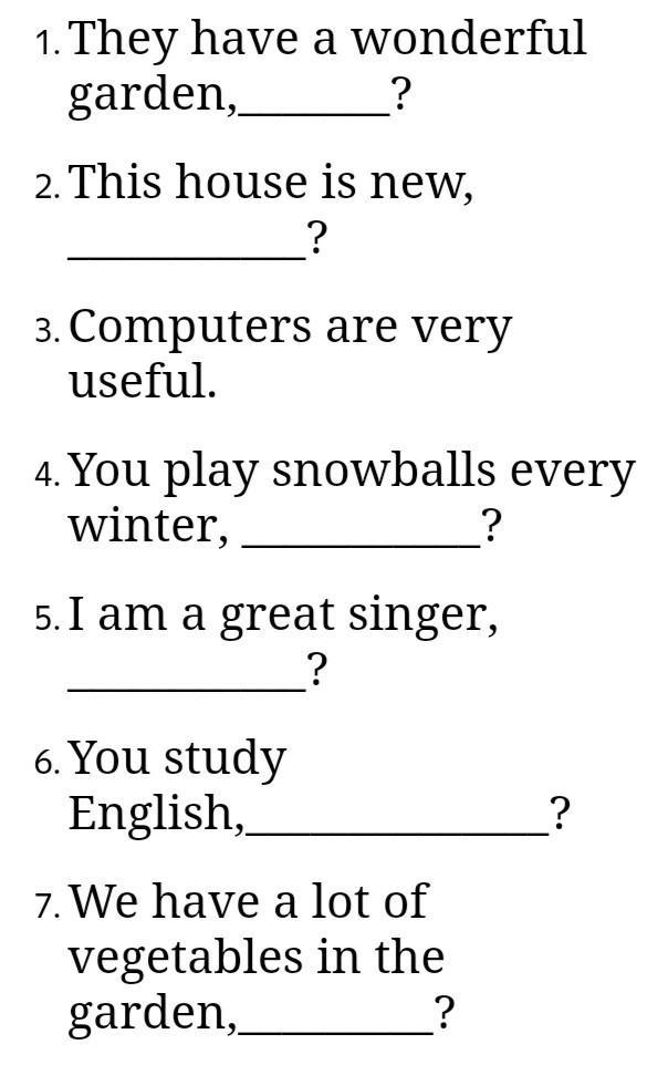 Допишите пожалуйста в концы этих предложений на английском - "Не так ли?"