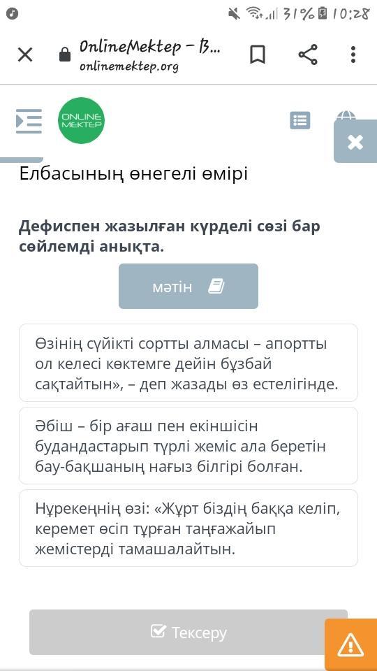 Дефиспен жазылған күрделі сөзі бар сөйлемді анықта.