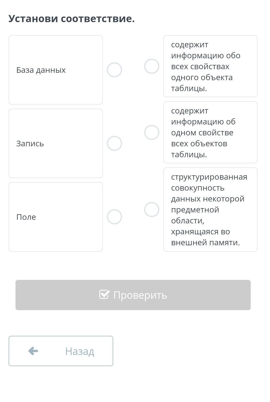 запись содержит информацию обо всех свойствах одного объекта таблицы