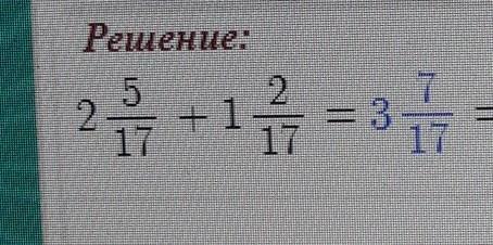 2целых 5/17 + 1целая2/17= 3 целых 7/17