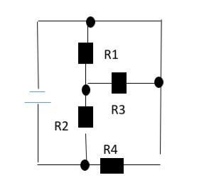 Найти полное сопротивление электрической цепи ( рисунок 1),если внутреннее сопротивление источника 1 Ом,а сопротивление других участков цепи соответственно равны R1=40 Ом; R2=40 Ом; R3=40 Ом; R4=40 Ом.