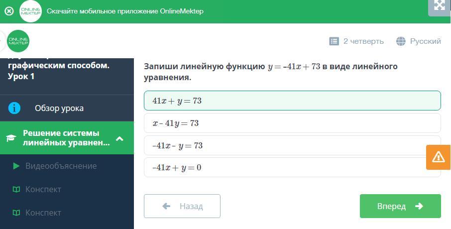Запиши линейную функцию y = –41x + 73 в виде линейного уравнения. дам десять баллов